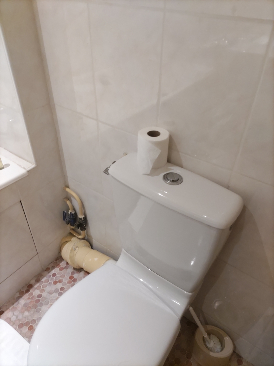 トイレットペーパーホルダーはなく、タンクの上にトイレットペーパーが1つ置いてあります。