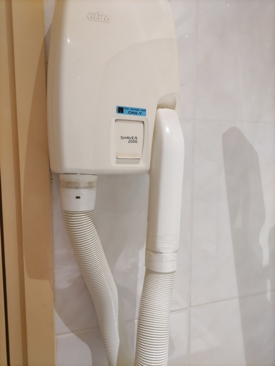 昔の日本旅館のようなドライヤーでホースがついているのですが、つなぎ目は、テープで巻かれてありました。