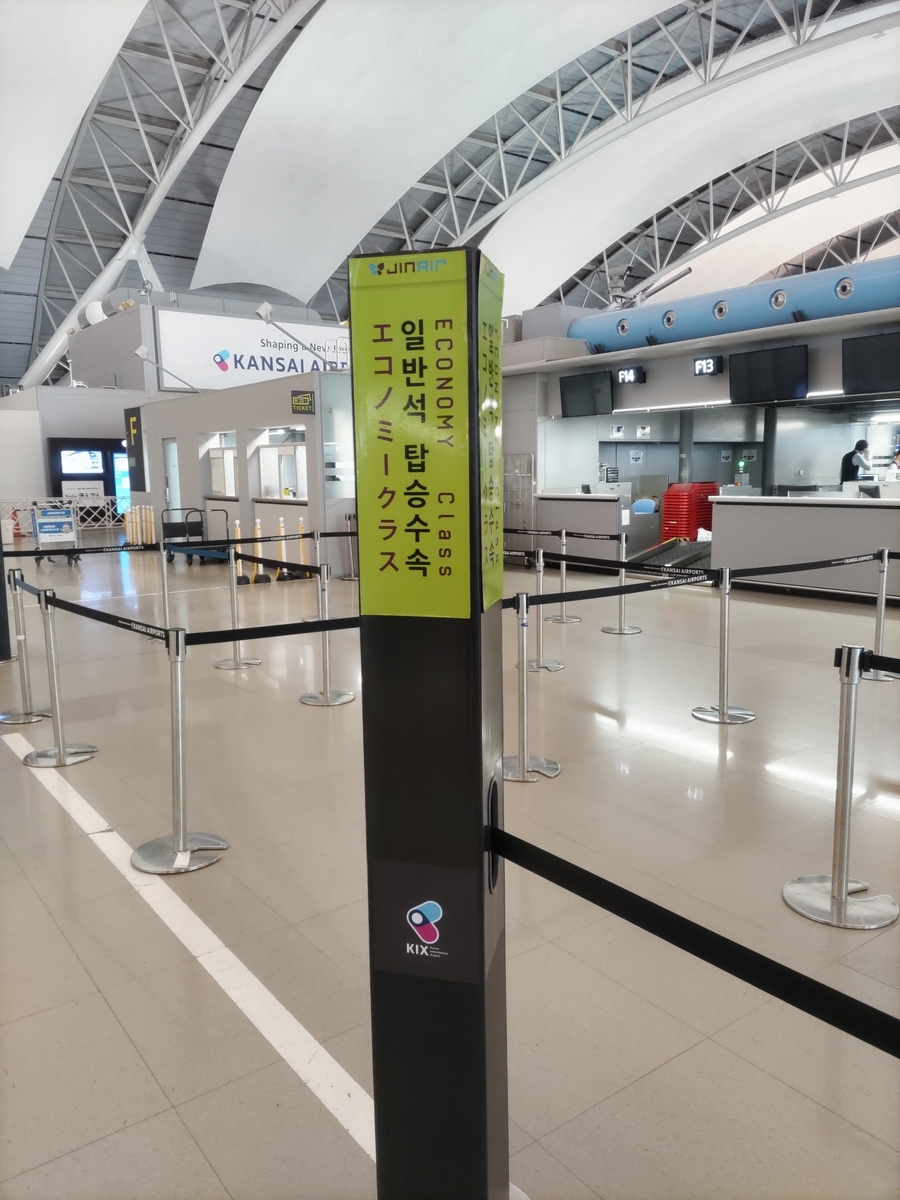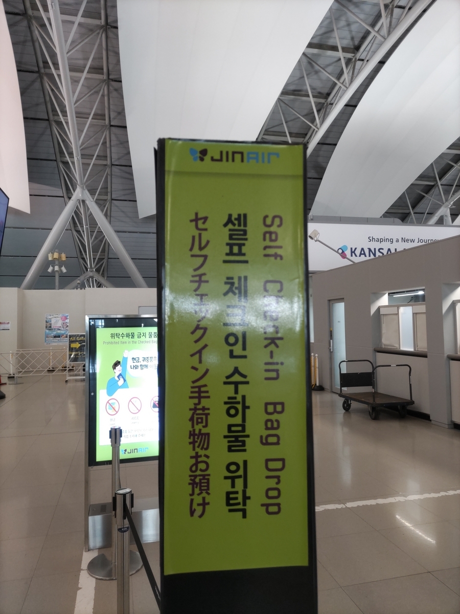 釜山から関空行きのチェックインですが、関空が10分前だったので、こちらも早くチェックイン出来るかと思いましたが、キッチリ時間通りでした。